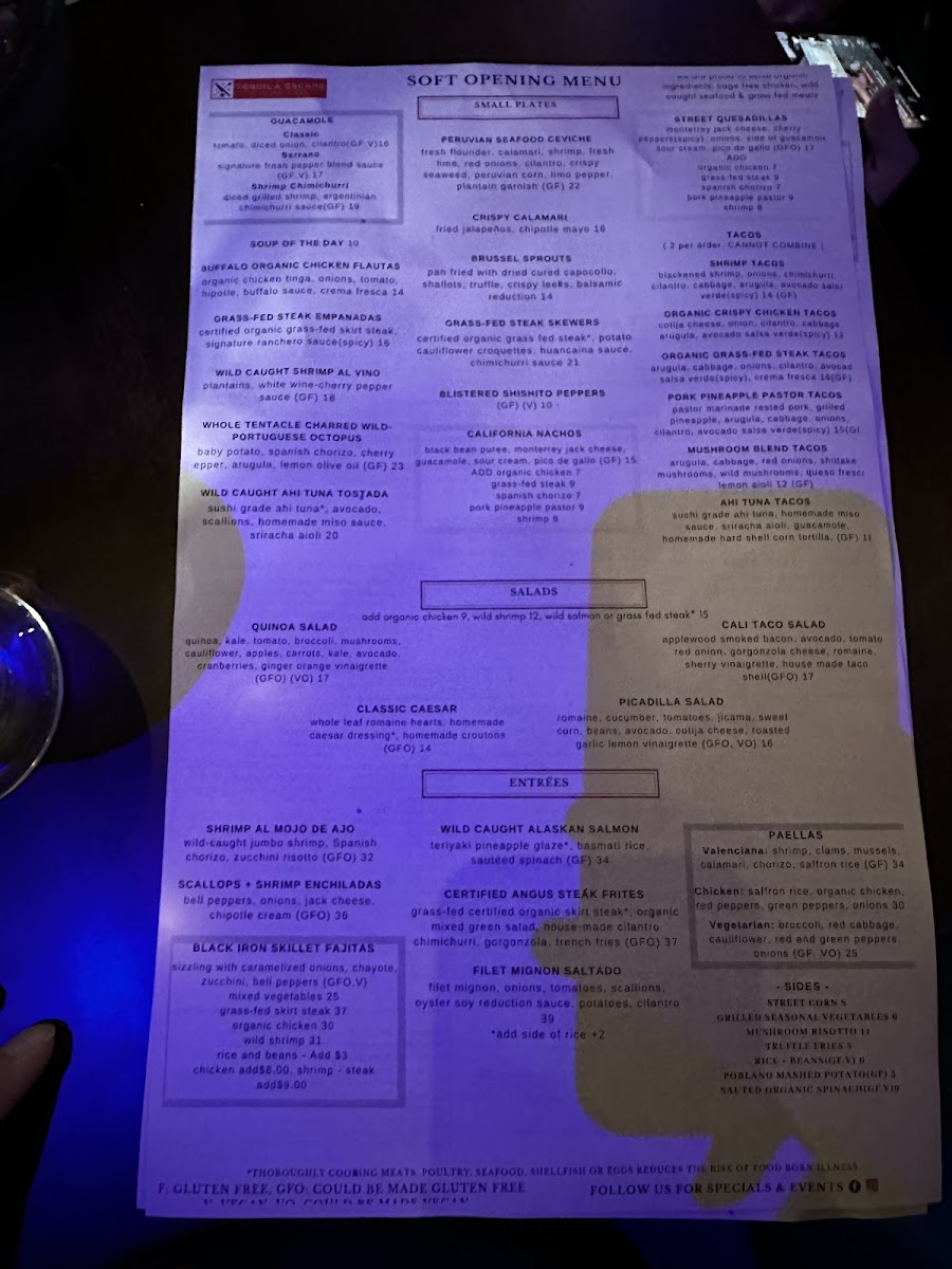 Blackened shrimp, onions, chimichurri, cilantro, salsa verde.